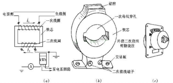 電流互感器(a)內電流原理電路;(b)0.5kv; (C)10kV