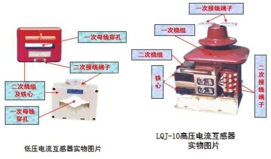 電流互感器作用是將一次回路的大電流變換為二次回路的小電流,供給測量外表和繼電保護(hù)設(shè)備用的電流電源。電流互感器二次側(cè)電流均為5A。電流互感器按原繞組的匝數(shù)分為單匝(母線式、芯柱式、套管式)和多匝(線圈式、線環(huán)式、串級式);按絕緣方式分為瓷絕緣、澆注絕緣、樹脂澆注等;按一次電壓分為高壓和低壓兩大類;按用處分為測量用和保護(hù)用兩類;按準(zhǔn)確度等級分為0.1、0.2、0.5、1.0、3.0、10等。電流互感器外形如圖示。