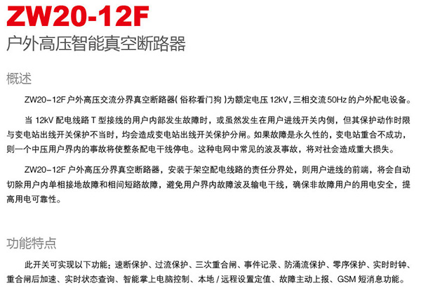 當(dāng)前位置:主頁 > 產(chǎn)品展示 > 戶外真空斷路器 > ZW20-12F戶外高壓智能真空斷路器